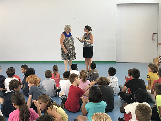 Les élèves de l'école des Sablons à Gif-sur-Yvette ont reçu le Tritou d'or remis par Caroline Morch, déléguée du Siom.